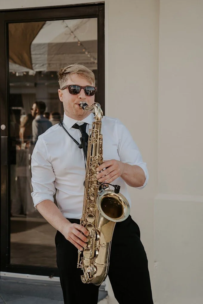 If you’re considering live saxophone for your event, book Taylor!! He is professional, talented, and knows exactly how to get the party going. We’re so glad we booked him!”